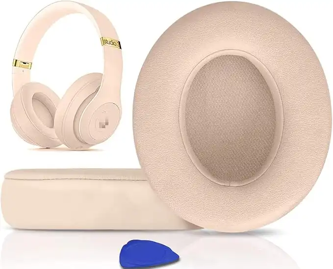 SoloWIT® Professional Earpads Replacement Ear Pads Cushions for Beats Studio 2 & 3 Wireless & Wired with Soft Protein Leather, Noise Isolation Memory Foam, Stronger Adhesive - Sand