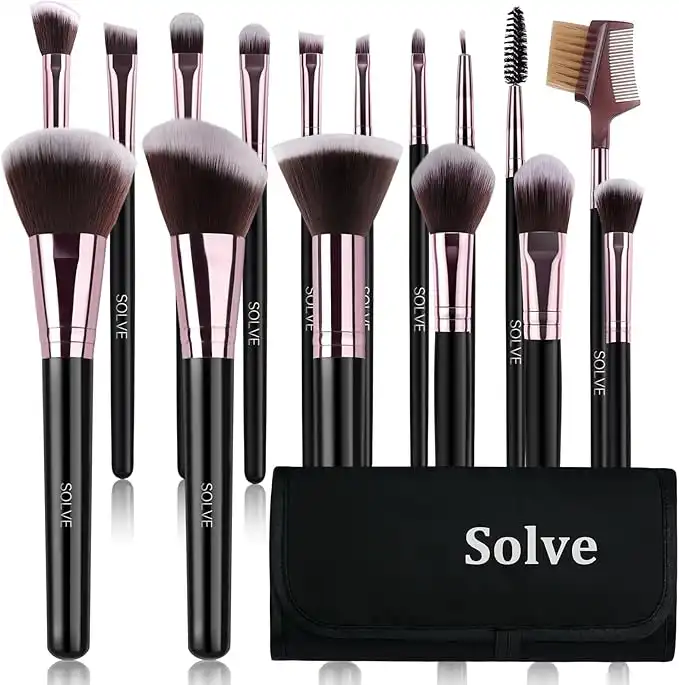 SOLVE Makeup Brushes 16 Pcs Premium Synthetic Foundation Blending Blush Concealer Eye Shadow Makeup Brush Setï¼Å’Leather Travel Makeup bag Includedï¼Å’ Black with Rose Gold — Price History & Tracker | DeserTracker