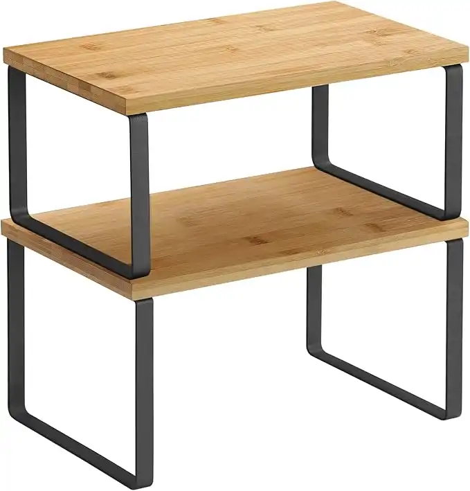 SONGMICS Spice Rack, Set of 2 Kitchen Organisers, Kitchen Shelf, Cupboard Organiser, Kitchen, Expandable, Small Shelf, Stackable, Metal and Wood Material, Ink Black/Natural Beige KCS02NB — Price History & Tracker | DeserTracker