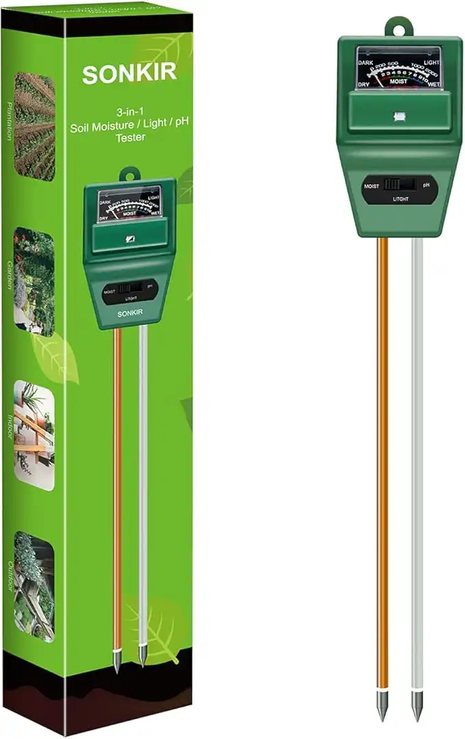 Sonkir Soil pH Meter, MS02 3-in-1 Soil Moisture/Light/pH r Gardening Tool Kits for Plant Care, Great for Garden, Lawn, Farm, Indoor & Outdoor Use (Green)