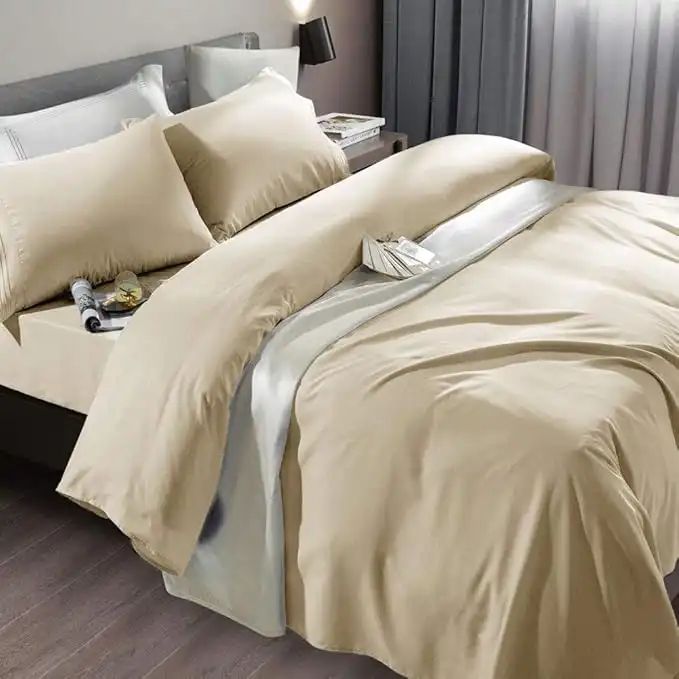 SONORO KATE Bed Sheet Set Super Soft Microfiber 1800 Thread Count Luxury Egyptian Sheets Fit 18-24 Inch Deep Pocket Mattress Wrinkle and Hypoallergenic-4 Piece (Beige, Twin)