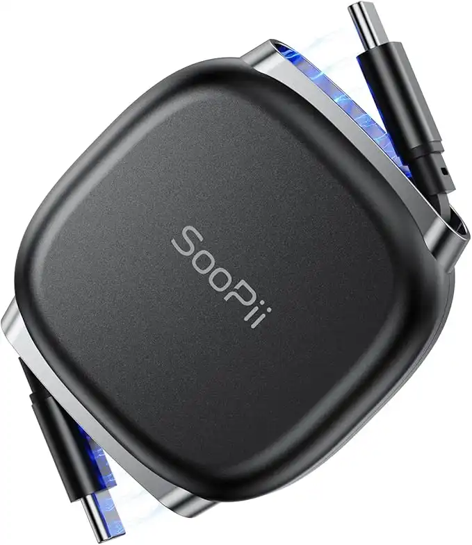 SooPii Retractable USB C to USB C Cable (1Pack 3.3FT), 240W USB C Fast Charging Cord with Mag Snap Storage, 5-Stage Length Preset Type C Cable for iPhone 16/15 Pro Max, Galaxy S25/24