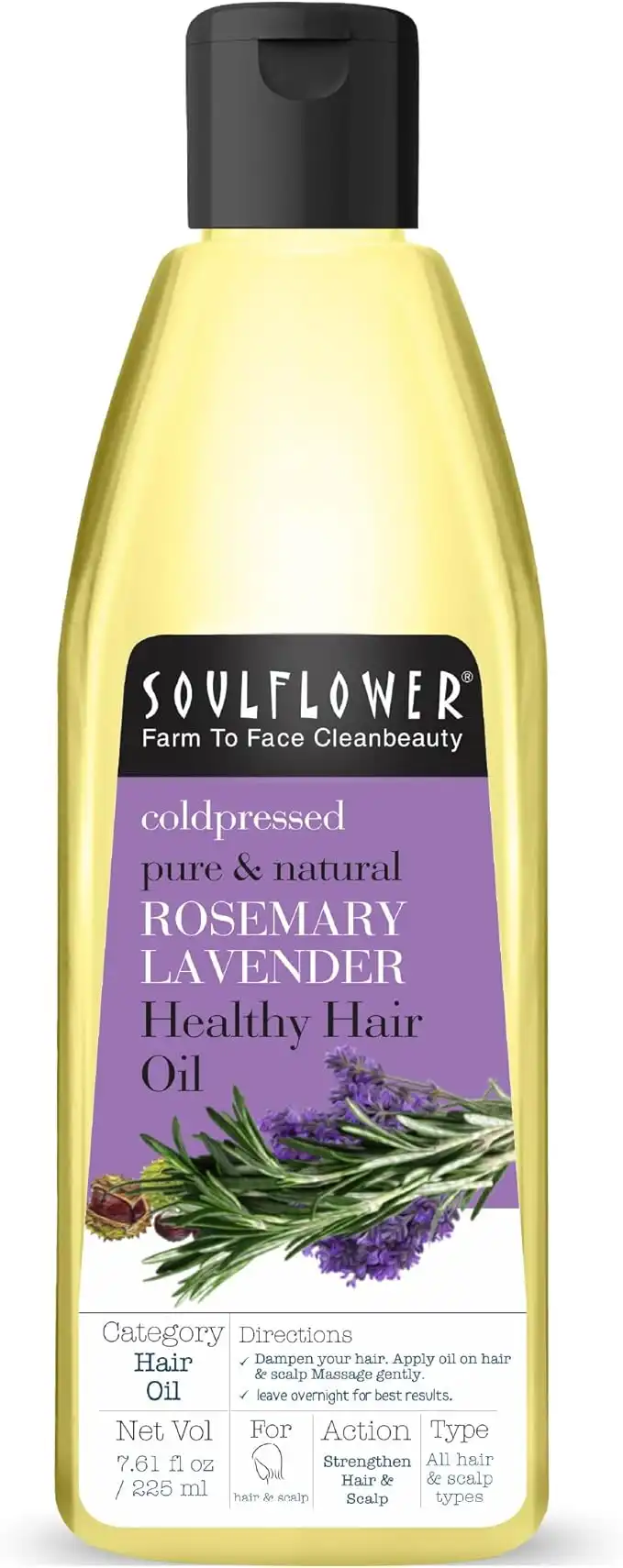 Soulflower Rosemary Lavender Oil for Healthy Hair, Scalp, Hair Roots - 100% Pure & Natural Undiluted Coldpressed Oil, 225ml