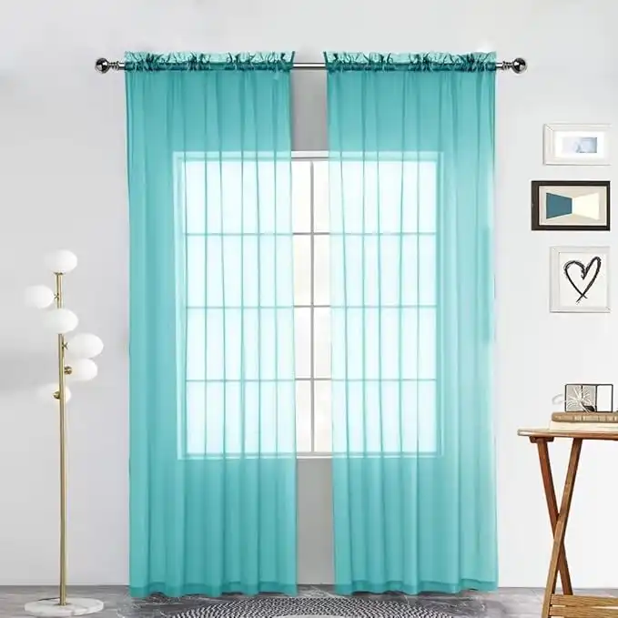 amazon.aeSpaceDresser Sheer Voile Window Treatment. Rod Pocket Curtain Panels for Kitchen Bedroom Living Room Drapes Sunlight Filtering Privacy Semi Home Decor Assorted Colors Sizes (Turquoise, 52 W x 45 L)