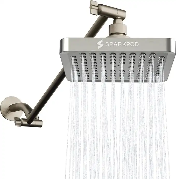 amazon.aeSparkPod 6 Inch Rain Shower Head with Shower Arm Extension - High Pressure Rain - Luxury Modern Look - No Hassle Tool-less 1-Min Install (16'' Shower Arm Extension, Elegant Brushed Nickel) (SRSH6-BN)