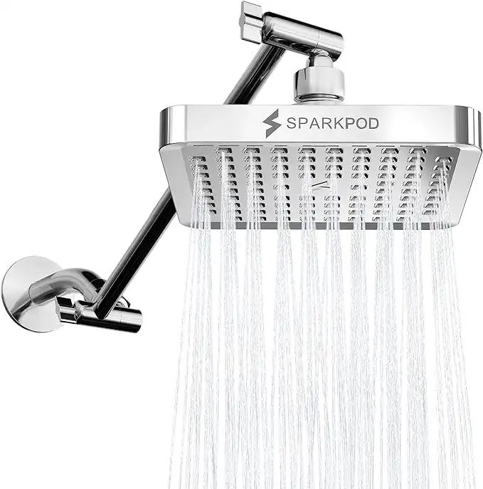 SparkPod 6 Inch Rain Shower Head with Shower Arm Extension - High Pressure Rain - Luxury Modern Look - No Hassle Tool-less 1-Min Install (11" Shower Arm Extension, Luxury Polished Chrome), SRSH6-C — Price History & Tracker | DeserTracker