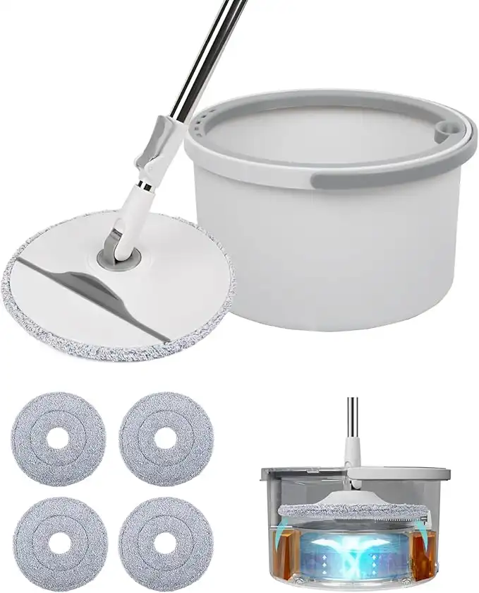 amazon.comSpin Mop and Bucket Set for Floor Cleaning with Self Separation Dirty and Clean Water System, Floor Cleaning Mop System for Home Kitchen Bathroom, Super Absorbent Mops for Tile Wood Marble