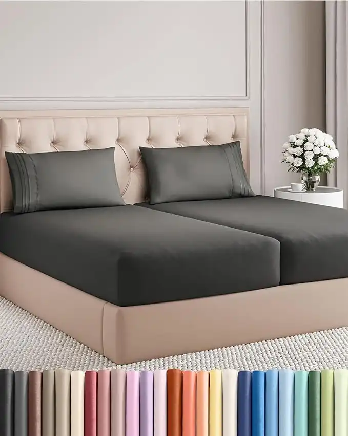 amazon.aeSplit King Size 5 Piece Bedding Sheet Set - Breathable & Cooling - Hotel Luxury Bed Sheets Set - Easy Fit - Soft, Wrinkle Free & Comfy Charcoal Oeko-Tex Bedding Sheets - Deep Pockets 5 Piece Set