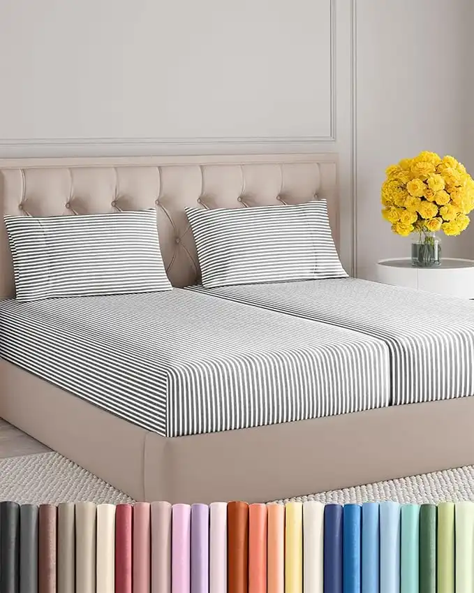 amazon.aeSplit King Size 5 Piece Bedding Sheet Set - Breathable & Cooling - Hotel Luxury Bed Sheets Set - Easy Fit - Soft, Wrinkle Free & Comfy Grey Stripes Oeko-Tex Bedding Sheets - Deep Pockets 5 Piece Set