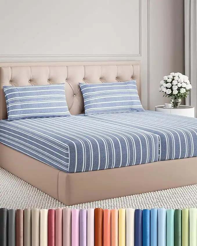 amazon.aeSplit King Size 5 Piece Bedding Sheet Set - Breathable & Cooling - Hotel Luxury Bed Sheets Set - Easy Fit - Soft, Wrinkle Free & Comfy Blue Stripes Oeko-Tex Bedding Sheets - Deep Pockets 5 Piece Set