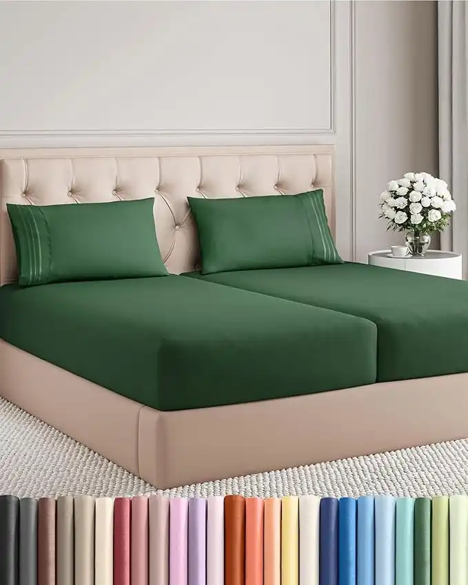 amazon.aeSplit King Size 5 Piece Bedding Sheet Set - Breathable & Cooling - Hotel Luxury Bed Sheets Set - Easy Fit - Soft, Wrinkle Free & Comfy Emerald Oeko-Tex Bedding Sheets - Deep Pockets 5 Piece Set