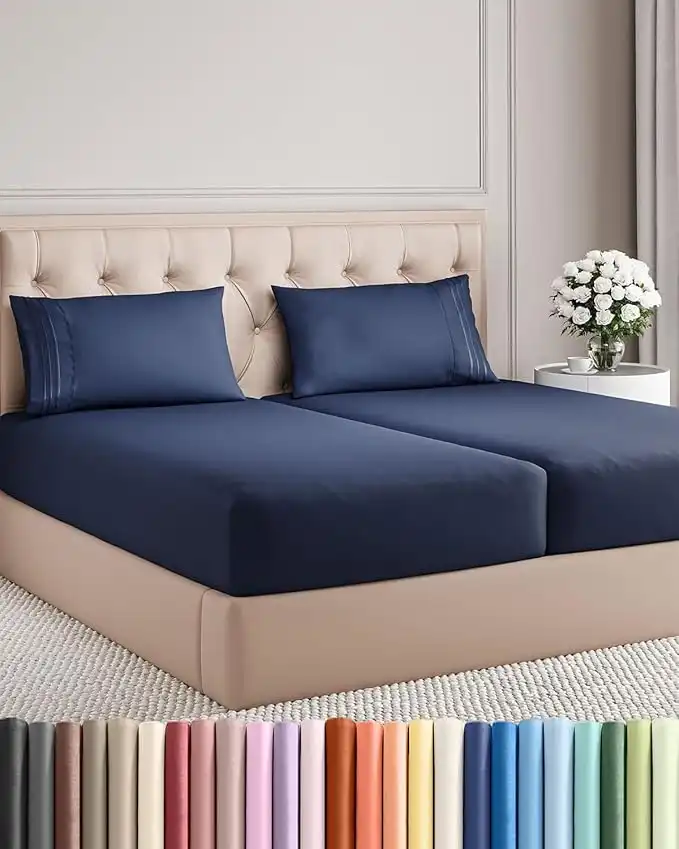 amazon.aeSplit King Size 5 Piece Sheet Set - Comfy Breathable & Cooling Bed Sheets Set - Hotel Luxury Bedding for Women, Men, Kids, Teens, Boys & Girls - Deep Pockets, Soft, Wrinkle Free - Oeko-Tex - Navy Blue