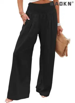 Spring Summer for Women New Women Pants Office Lady Pockets Solid Loose Casual Wide Leg Long Trousers High Waist Wide-Leg Pants Lounge Trousers with Pockets