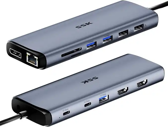 SSK 8K USB C Dock for Thunderbolt Laptop, MacBook Docking Station 3 Monitors,10Gbps USB C Hub Dual HDMI, Displayport, Ethernet,100W PD, Mic/Audio, USB C&A 3.2 Gen 2 Port for iPhone 15/Mac/Lenovo