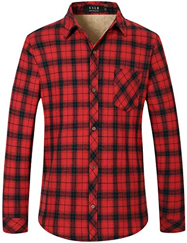 SSLR Men's Winter Warm Camp Button Down Fleece Lined Plaid Lightweight Shirt Jackets (Large, Red Black)