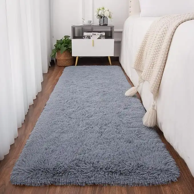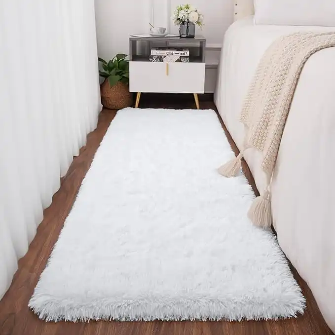 ST. BRIDGE White Runner Rug for Bedroom 2x4 Feet, Fluffy Shag Area Rugs for Living Room Nursery, Fuzzy Furry Bedside Rug for Girls Kids Baby Room, Modern Indoor Comfy Plush Carpet Decor