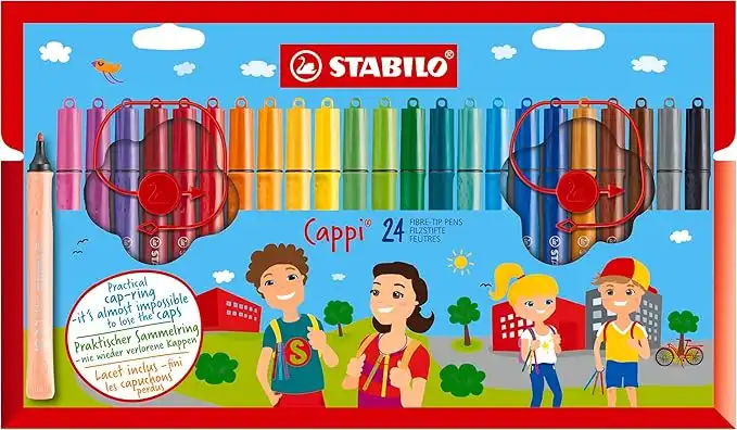 STABILO Felt Tip Pen - Cappi - Wallet of 24 - Assorted Colours + 2 cap-rings — Price History & Tracker | DeserTracker