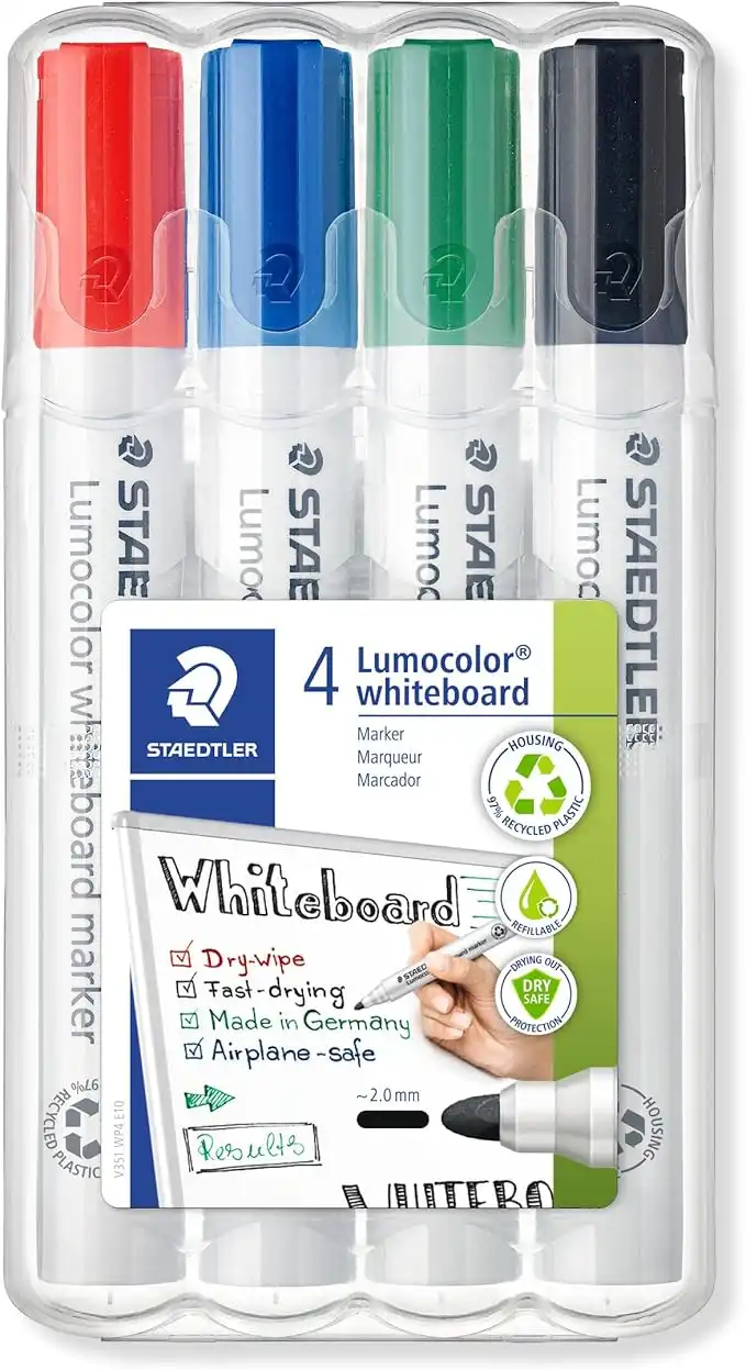 STAEDTLER 351 WP4 Lumocolour Whiteboard Marker with Bullet Tip, Multicolour, Pack of 4 — Price History & Tracker | DeserTracker