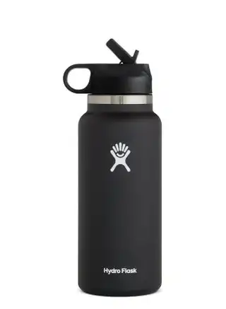 Stainless Steel Vacuum Insulated Water Bottle With Straw Lid Outdoors Gym Sports Water Bottle (946ml/32oz) - Black