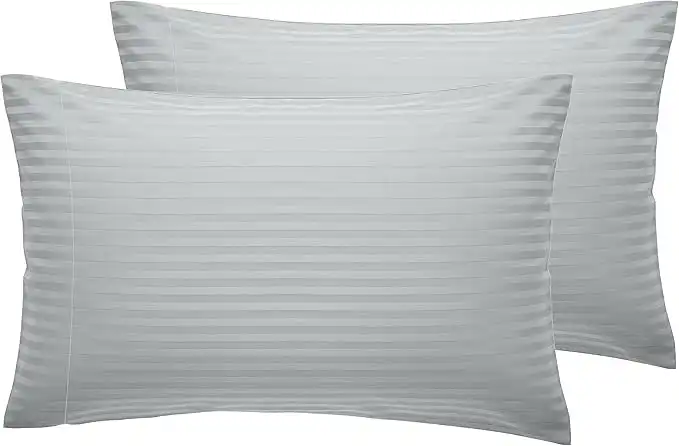 amazon.aeStandard Queen Size Pillowcase Set - 400 Thread Count, 100% Cotton Sateen, Set of 2 Pillow Covers, Breathable, Cooling, Extra Soft Pillowcases for Kids, Teens, Women & Men - Striped Silver Gray