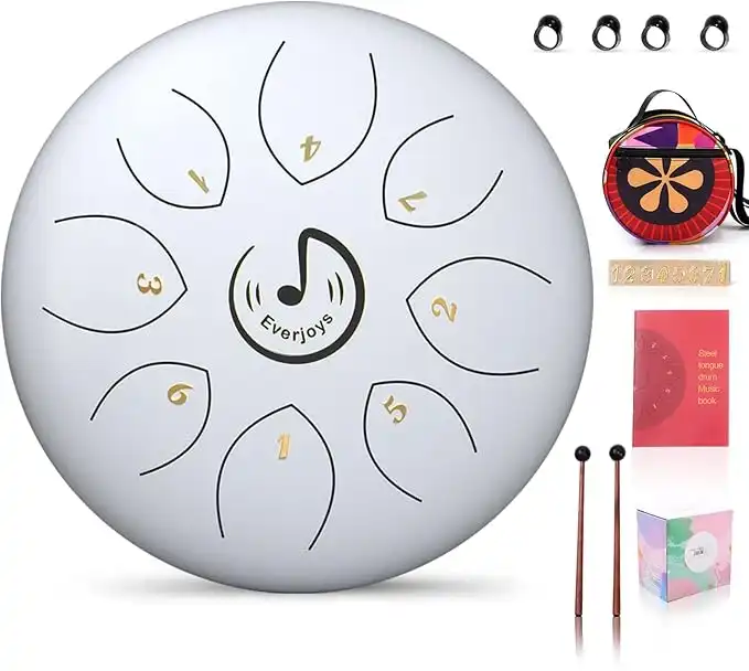 Steel Tongue Drum 6 inch 8 Notes C-Key Handpan Drum Percussion Instrument Ethereal Drum w/Bag,Music Book and Mallets for Music Education,Yoga Meditation,Mind Healing(White)