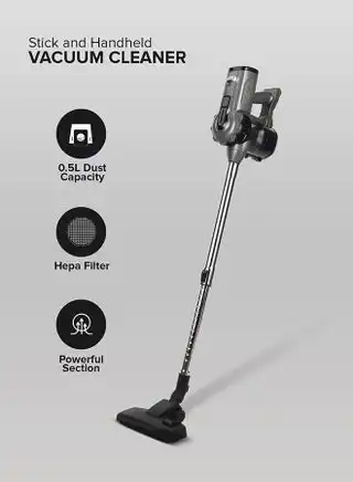 noon.comStick and Handheld Vacuum Cleaner, Cyclonic Filtration System, Plastic with HEPA Filter/ Perfect for Home, Office, Apartments/ Easy to Use Model, Low Noise Design 0.5 L 800 W GVC19036 Black and Silver