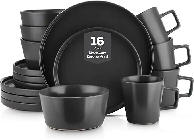 Stone Lain Coupe Dinnerware Set, Service For 4, Black Matte