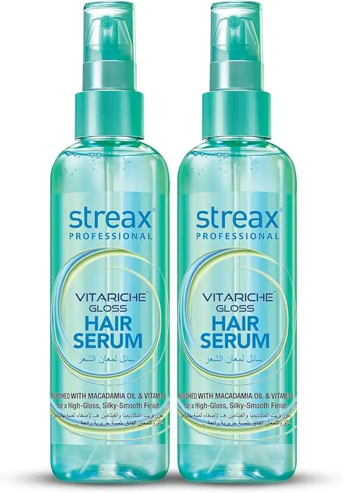 Streax Professional Vitariche Gloss Hair Serum for Women & Men – 100ml, Pack of 2 | Enriched with Macadamia Oil & Vitamin E | For Gorgeous & Shiny Hair | Helps in Everyday Styling | Adds Shine to Hair