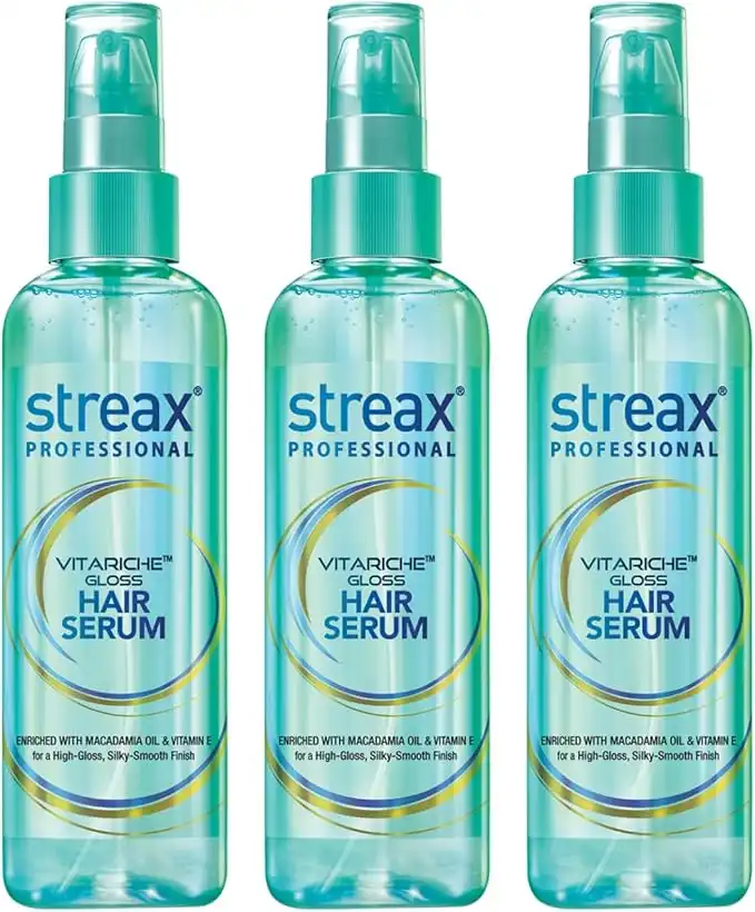 Streax Professional Vitariche Gloss Hair Serum for Women & Men – 100ml, Pack of 3 | Enriched with Macadamia Oil & Vitamin E | For Gorgeous & Shiny Hair | Helps in Everyday Styling | Adds Shine to Hair — Price History & Tracker | DeserTracker