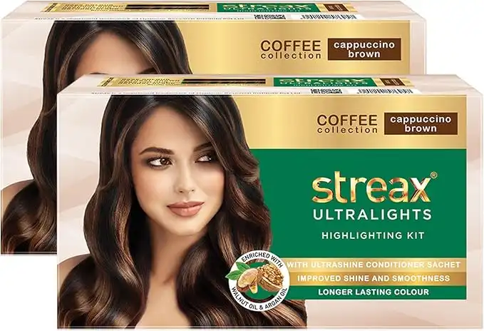 amazon.aeStreax Ultralights Highlighting Kit for Women & Men | Contains Walnut & Argan Oil | Shine On Conditioner | Longer Lasting Highlights | Coffee Collection - Cappuccino Brown, 60 ml (Pack of 2)