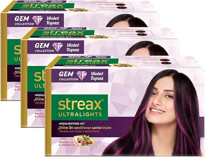 amazon.aeStreax Ultralights Highlighting Kit For Women & Men | Contains Walnut & Argan Oil | Shine On Conditioner | Longer Lasting Highlights | Gem Collection - Violet Topaz, 120 ml (Pack of 3)