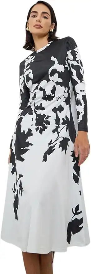 Styli 7024075220 Women Floral Print A-Line Midi Dress