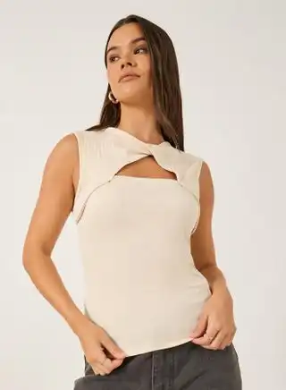 noon.comStyli Textured Sleeveless Top With Front Twist Detail