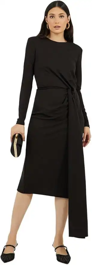 Styli Women 7011173501 Solid Long Sleeves Sheath Midi Dress with Self Tie Up — Price History & Tracker | DeserTracker