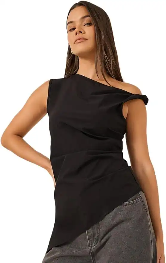 Styli Women 7012393701 Solid Asymmetric Hem One Shoulder Sleeveless Top — Price History & Tracker | DeserTracker