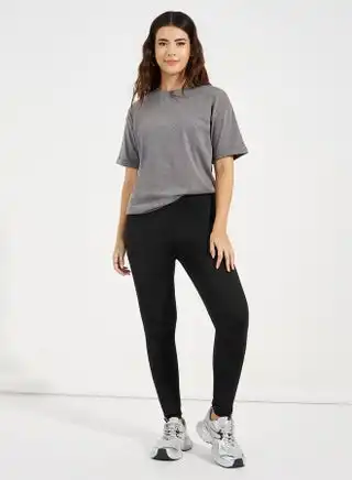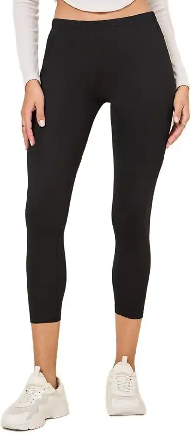 STYLI Women Basic Elastic Waistband Crop Length Leggings