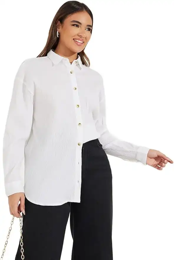 Compare all Styli Women Oversized Textured Longline Shirt with Buttons prices