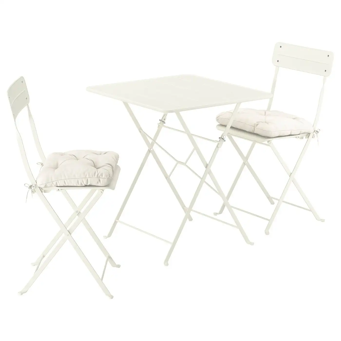 SUNDSÖ table and 2 folding chairs, outdoor off-white/off-white Kuddarna light grey-beige, 65x65 cm - IKEA