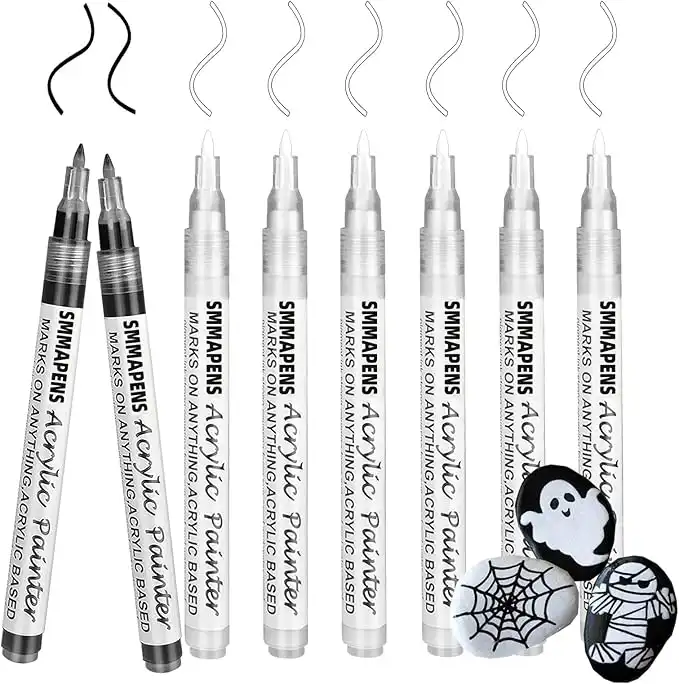 amazon.aesunis-official White Paint Pens (0.7mm), Acrylic Paint Marker Pen white permanent marker for Rock,Wood,Fabric,Glass,Canvas,Wood,Permanent Water Based,Extra-fine Tip,8 PCS(6 white & 2 black)