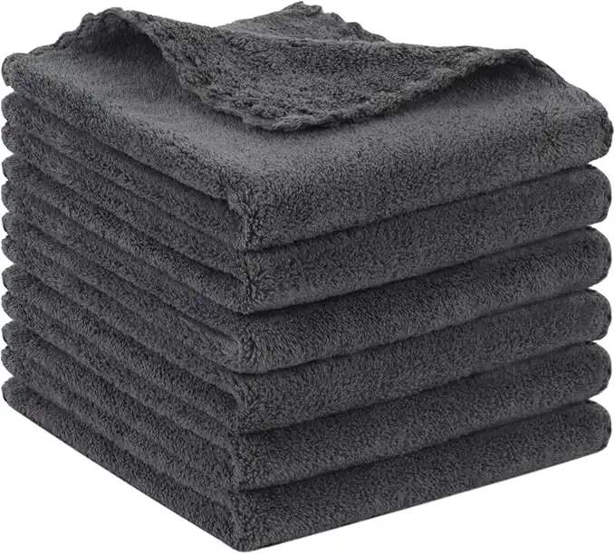 SUNLAND Microfiber Face Cloth Reusable Makeup Remover Facial Cleansing Towel Ultra Soft Face Washcloth 12inchx12inch 6 Pack Dark Grey
