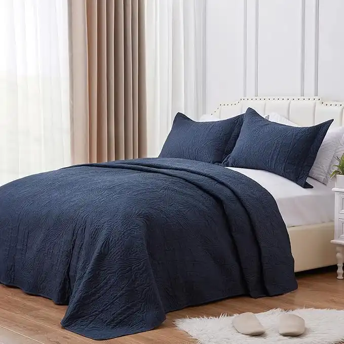 SunStyle Home Queen Size Quilt Dark Blue Bedspread - Lightweight Summer Quilt Set Full/Queen - Soft Microfiber Coverlet Bedding Set for All Season 3 Pieces(1 Quilt, 2 Pillow Shams) — Price History & Tracker | DeserTracker