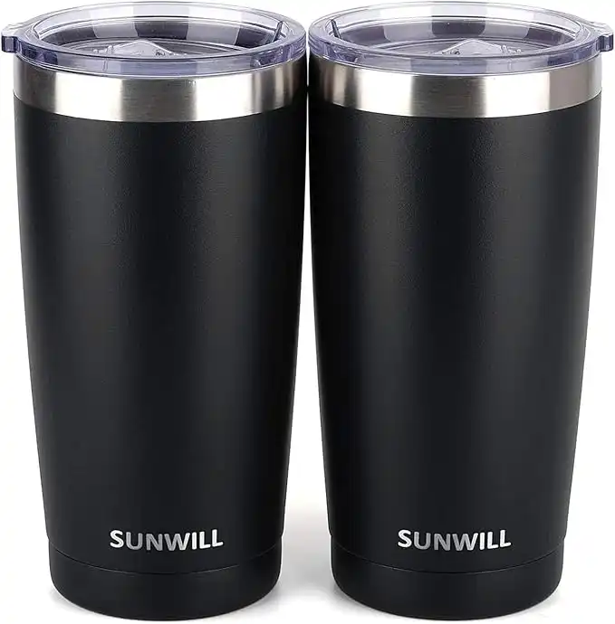 SUNWILL 20oz Tumbler with Lid (Powder Coated Black 2 pack), Stainless Steel Vacuum Insulated Double Wall Travel Tumbler, Durable Insulated Coffee Mug, Thermal Cup with Splash Proof Sliding Lid — Price History & Tracker | DeserTracker