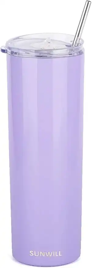 SUNWILL Straw Tumbler Skinny Travel Tumbler with Lid, Vacuum Insulated Double Wall Stainless Steel 20oz for Coffee, Tea, Beverages, Lavender — Price History & Tracker | DeserTracker