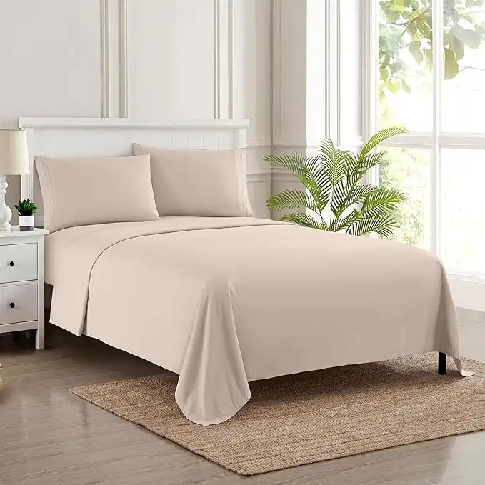 amazon.aeSweet Home Collection 1800 Thread Count 21" DEEP Pocket Sheet Soft Egyptian Quality Brushed Microfiber Luxury Bedding Set with Flat, Fitted, 2 Pillow Cases, Extra Full, Beige