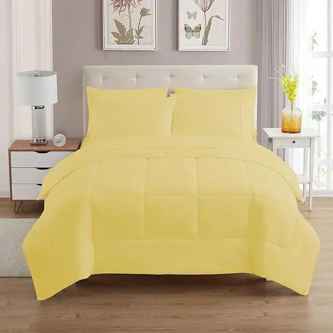 amazon.aeSweet Home Collection 5 Piece Comforter Set Bag Solid Color All Season Soft Down Alternative Blanket & Luxurious Microfiber Bed Sheets, Yellow, Twin