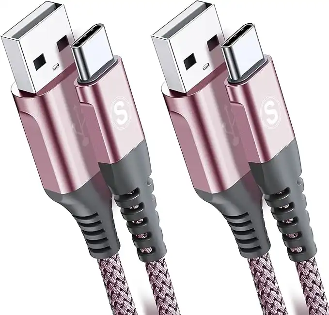 sweguard USB Type C Cable 3.1A Fast Charging [2Pack,10ft+10ft], USB-A to USB-C Charger Nylon Braided Cord for Samsung Galaxy S21 S20 S10 S9 S8 Plus,Note 20 10 9 8 7,A71 A51 A32,LG,Moto,PS5-Pink