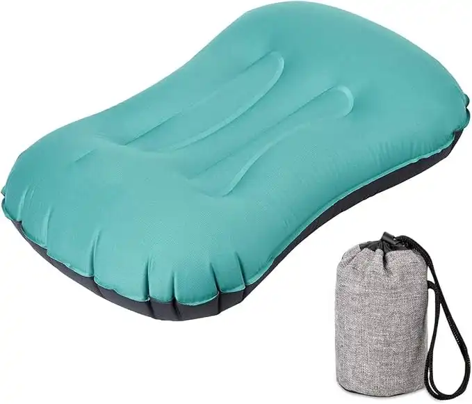 SYOSI Inflatable Travel Pillow, Ultralight Camping Pillow, Compressible Ergonomic Pillow for Neck Lumbar Support, Comfortable Neck Head Support Pillow for Camping Hiking Office Nap (Malachite Green)