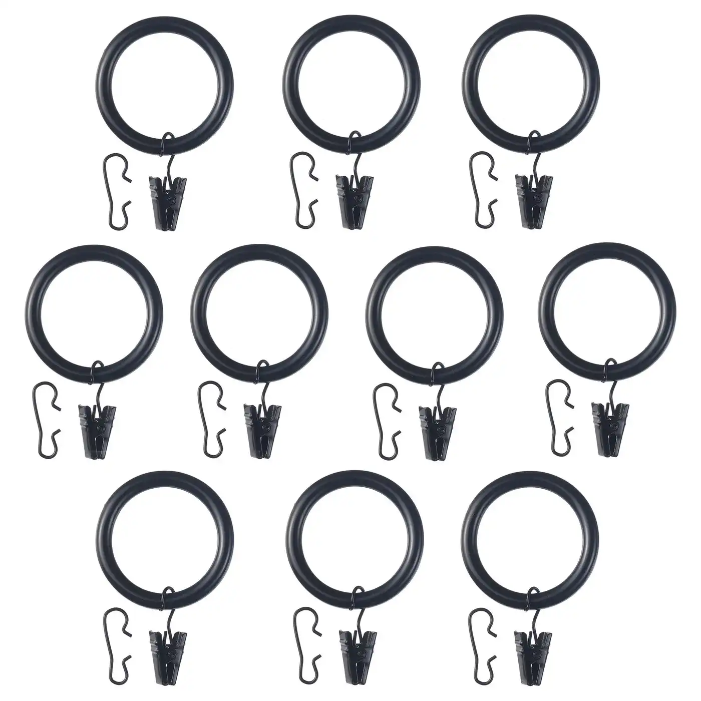 SYRLIG Curtain ring with clip and hook - black 38 mm