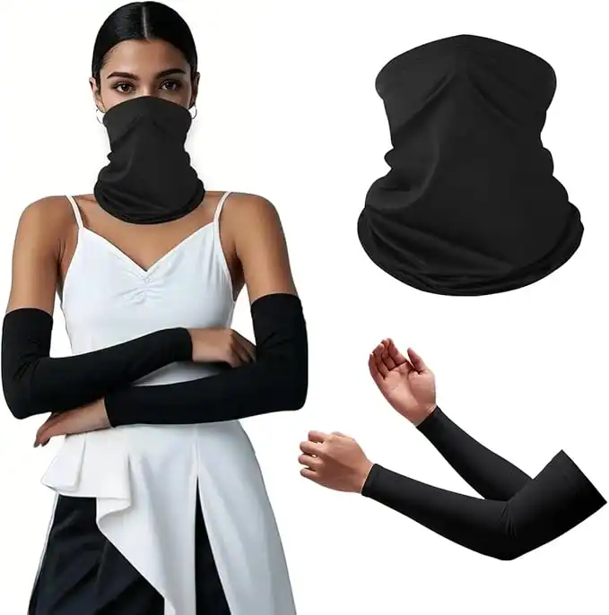 amazon.comT Tersely [2 in 1] UV Protection Combo-Cooling Ice Silk Face Mask & Breathable Arm Sleeves Set for Outdoor Sports - Stretchy Balaclava + Arm Covers for Cycling, Driving (Black, One Size Fits Most)
