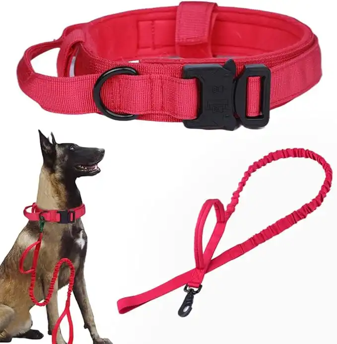 amazon.aeTactical Dog Collar and Leash Set Tactical Dog Collar with Handle Bungee Leash Adjustable Military Training Nylon Collar Dog Training Collar Leash Set with Control Handleand Metal Buckle (Red L